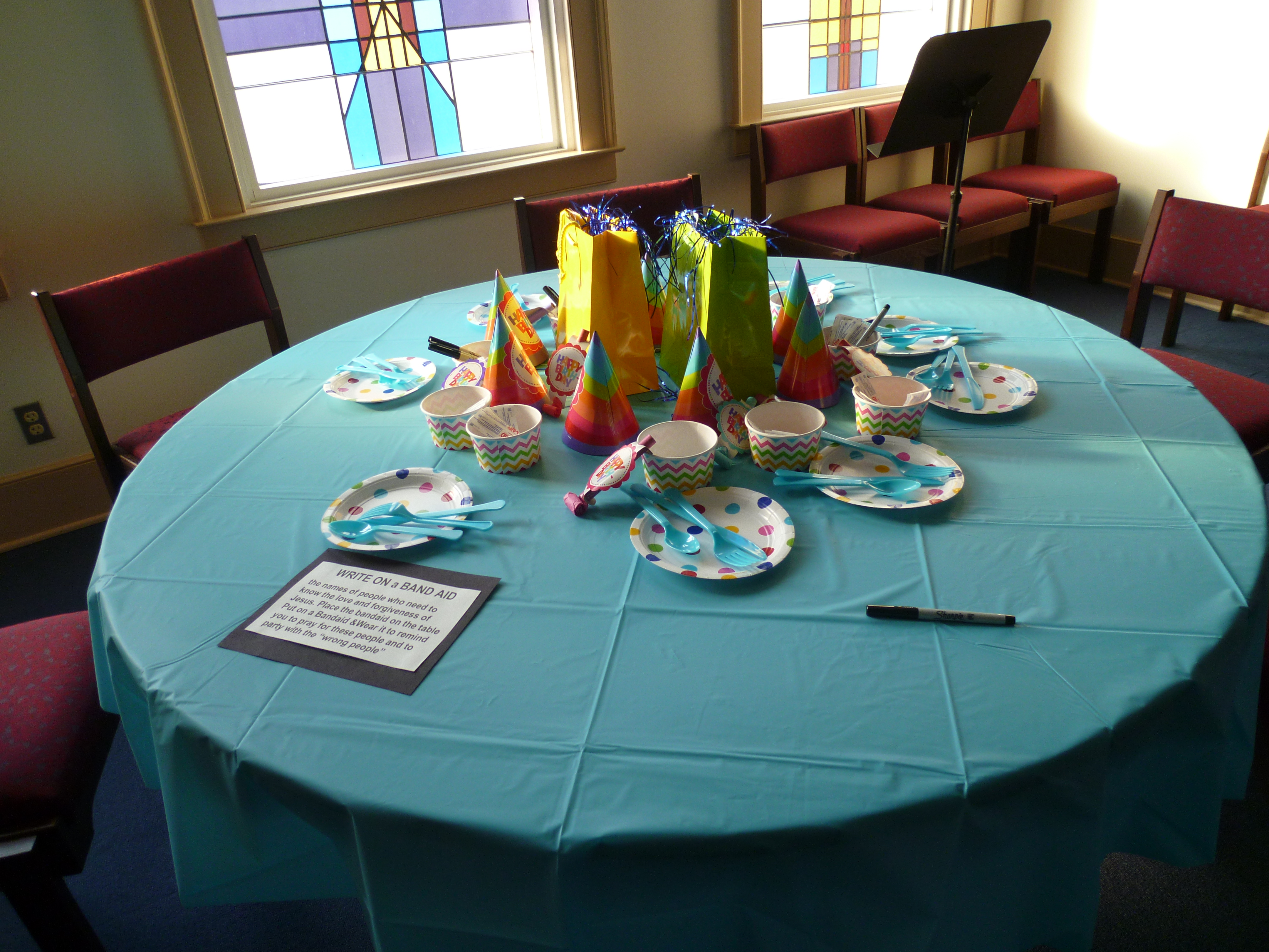 Party with Levi Table- Focuses on the outcasts of society and thinking who we invite to the party. The activity is to write the names of the unlikely guests on band aids that can be worn as you remember to pray for these individuals or groups.